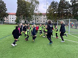 Idag tränade vi på att driva boll, på passning, på att fånga bollen med händerna när man är målvakt och slutligen på matchspel.